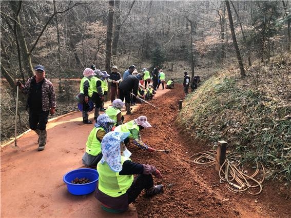 황톳길은 총연장 2km 규모로 지난 겨울 동안 굳거나 유실된 기존 황토 위에 질 좋은 황토를 전 구간에 다시 깔았다. 황토의 부드러운 촉감과 온기를 직접 느낄 수 있는 질퍽구간 0.6km와 이용 편의성을 높인 마른구간 1.4km로 구성됐다. 이용자들의 취향과 목적에 따라 구간을 선택할 수 있어 체험 만족도를 높였다.