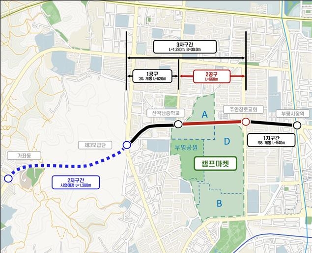 이로써 주안장로교회~제3보급단(1820m)까지 부평구 동·서축이 28년 만에 이어지게 됐다.
