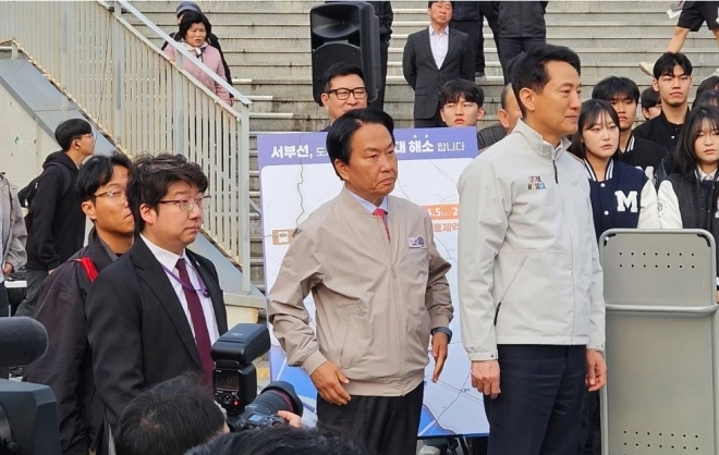 서울시의회 문성호 의원(국민의힘·서대문2)이 1일 서대문구 명지대학교 앞에서 서울시가 발표한 ‘서부선 도시철도 민간투자사업 우선협상대상자 지위 취소 및 재추진 계획’에 대해 지연된 사업을 정상화하기 위한 서울시의 결단을 적극 지지한다고 밝혔다. 문 의원은 제안한 바와 같이 민자 재공고의 신속한 진행을 위해 사업비 최적화는 물론, 재정 전환의 신속한 진행을 위해 서부선 리스크 관리 추경을 즉각 검토해 행정 공백 없는 속도전을 펼쳐야 한다고 촉구했다.