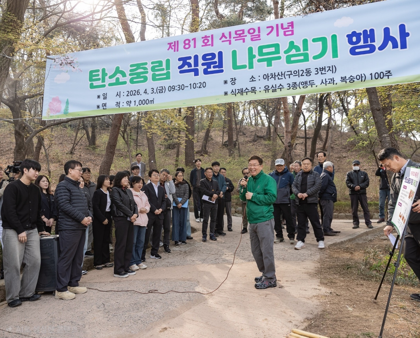 주민 생활권과 가까운 아차산 일대에 유실수를 심음으로써 도시 경관을 개선하고 자연과 공존하는 지속가능한 녹색도시 조성에 나섰다. 행사에는 김경호 구청장을 비롯해 직원 등 80여명이 참여했다.