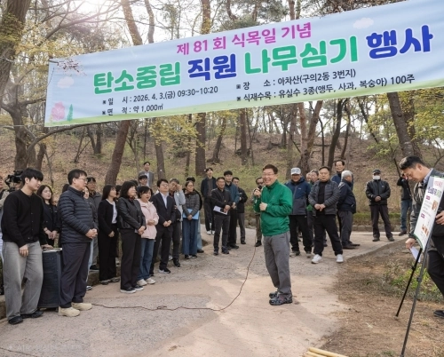 서울 광진구는 식목일을 기념해 지난 3일 아차산 일대에서 ‘탄소중립 직원 나무 심기 행사’를 열었다고 6일 밝혔다.기후위기 대응의 중요성이 커지는 가운데 도심 내 탄소흡수원을 확충하고 녹지공간을 확대하기 위해 마련됐다.