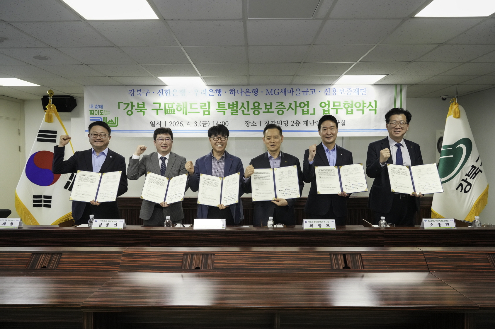 서울 강북구가 지난 3일 소상공인의 자금난 해소와 경영 안정을 지원하기 위해 ‘강북 구(區)해드림 특별신용보증사업’ 업무협약을 체결했다고 6일 밝혔다.