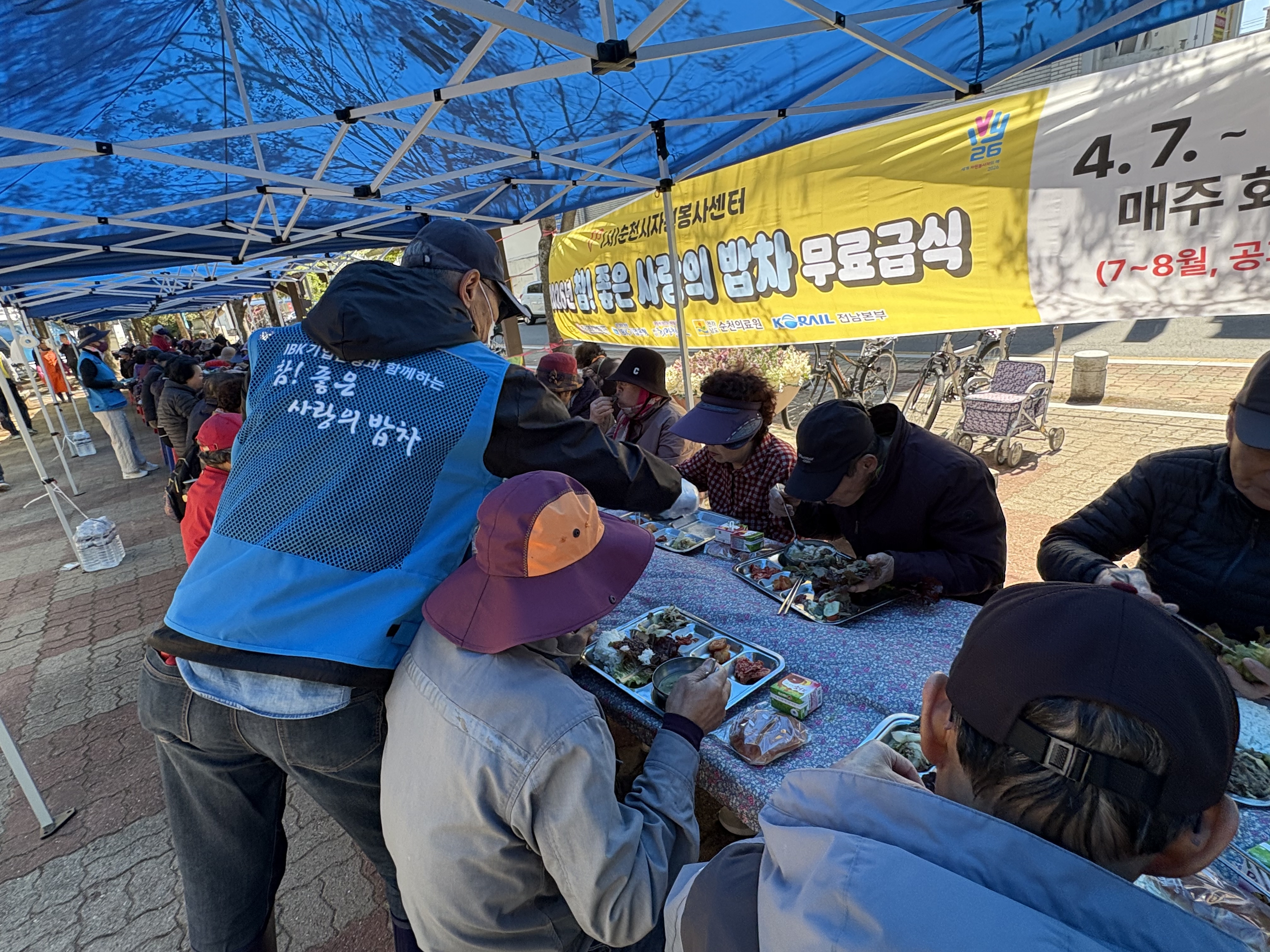 지난 7일부터 시작한 ‘참! 좋은 사랑의 밥차’는 순천시, IBK기업은행, 희망철도재단, 순천의료원 등이 협력해 운영한다. 지역 내 취약계층과 어르신에게 따뜻한 식사를 제공하는 나눔 사업이다. 이 사업은 무료 급식 제공에 그치지 않고 지역사회 공헌 활동과 재난·재해 구호 활동까지 연계해 추진하고 있다.