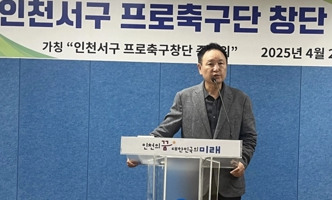 그는 “서구에는 2014년 아시안게임 개최를 위해 건설된 5만석 규모의 종합경기장(인천아시아드 주경기장)이 있지만 스포츠 콘텐츠의 부재로 인해 방치 중”이라며 “프로팀 창단은 경기장 방치 문제를 해결하고 가치를 극대화할 가장 현실적 방안”이라고 말했다.