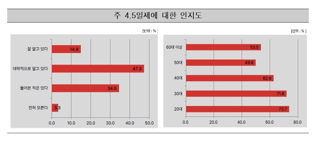 ○ 주 4.5일제에 대해 조사 대상의 62.2%가 인지하고 있음
