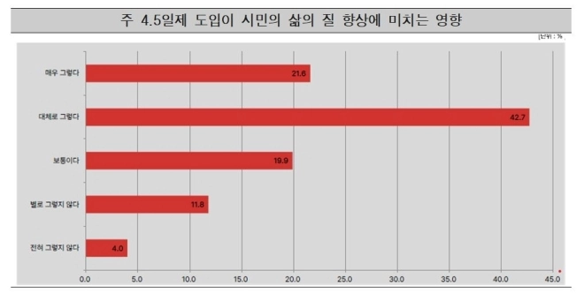 주 4.5일제 도입이 삶의 질 향상에 기여할 것이라는 기대(64.3%) 형성