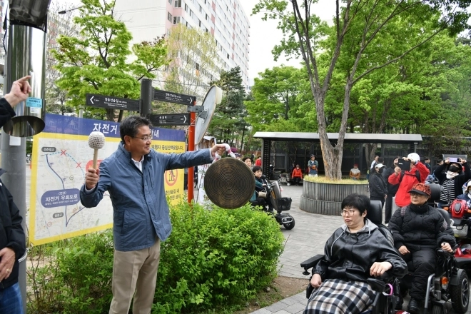 전동휠체어를 타고 행사에 참가한 우 협회장은 “잔디광장 출발점에서 공릉동 도깨비시장까지 다녀오는 3㎞ 구간 코스도 1시간 안에 거뜬히 다녀왔다”며 웃었다. 이날 500여명의 참가자는 맞춤형 3개 코스 중 하나를 완주했다.