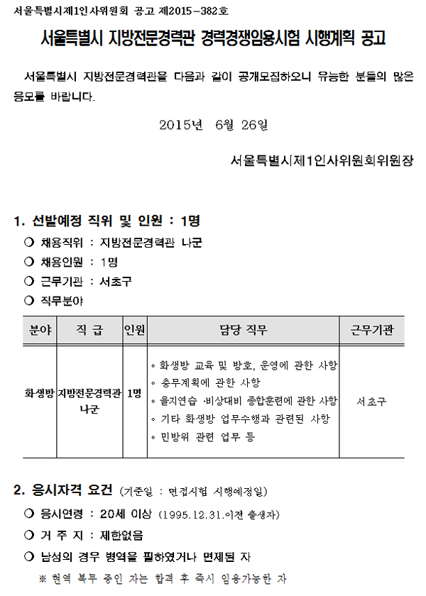 시험공고 - 지방전문경력관 경력경쟁임용시험