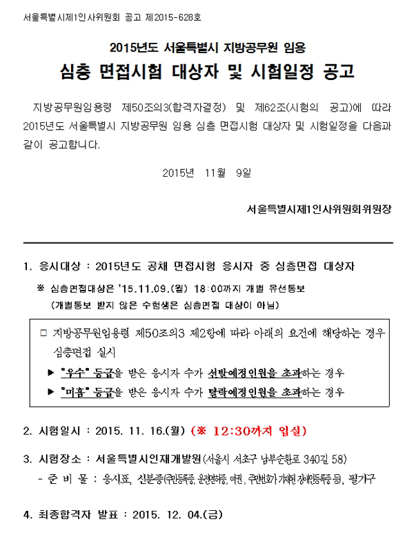 심층 면접 대상 - 2015년도 서울특별시 지방공무원 임용시험