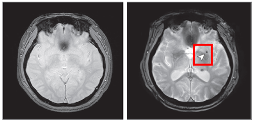 < 8년 후 뇌 미세출혈이 발생한 뇌영상 이미지 >