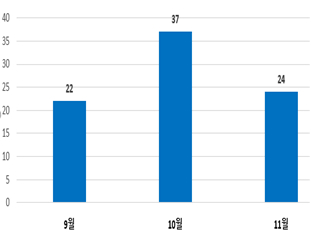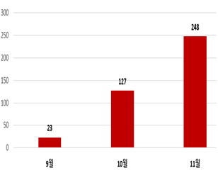 (9월) 23건 → ('10월) 127건 → ('11월) 248건 | (9월) 22건 → ('10월) 37건 → ('11월) 24건 |