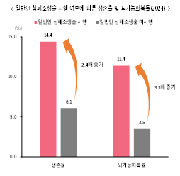 - 2024년 급성심장정지조사 결과 발표, 환자 생존율 9.2%, 뇌기능회복률 6.3%로 조사 이래 최고 수준