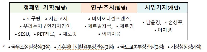 * <캠페인 멘토> ▴강지현 서비스플랜 대표, ▴김민기 TBWA 상무, ▴오형균 McCANN 이사, ▴이보영 에델만코리아 전무, ▴황성필 제일기획 CD<기자 멘토> ▴박상욱 JTBC 기자, ▴황덕현 뉴스1 기후환경 전문기자, ▴최나실 한국일보 기자