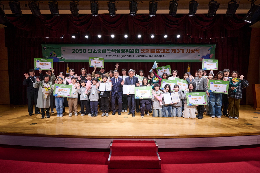 대통령직속 2050 탄소중립녹색성장위원회(위원장: 김민석 국무총리, 이하 '탄녹위')는 「넷제로프렌즈 제3기」의 활동을 종료하고 12월 9일(화) 정부서울청사 별관 대강당에서 우수 활동자 시상식을 개최했다.