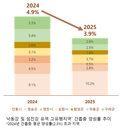 특히 낙동강 및 섬진강 유역 고유행지역의 간흡충 양성률이 3.9%로 전년(4.9%) 대비 1.0%p 감소하여 질병관리청이 중점을 두고 추진해온 고유행지역 집중관리 성과가 뚜렷하게 확인되었다.