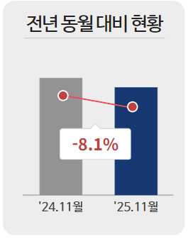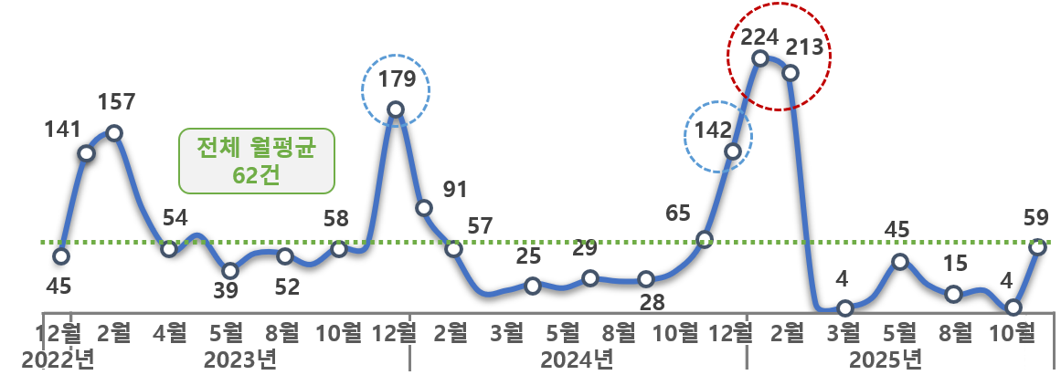 < 최근 3년간(2022.12.~2025.11.) 월평균 민원 추이 > |
