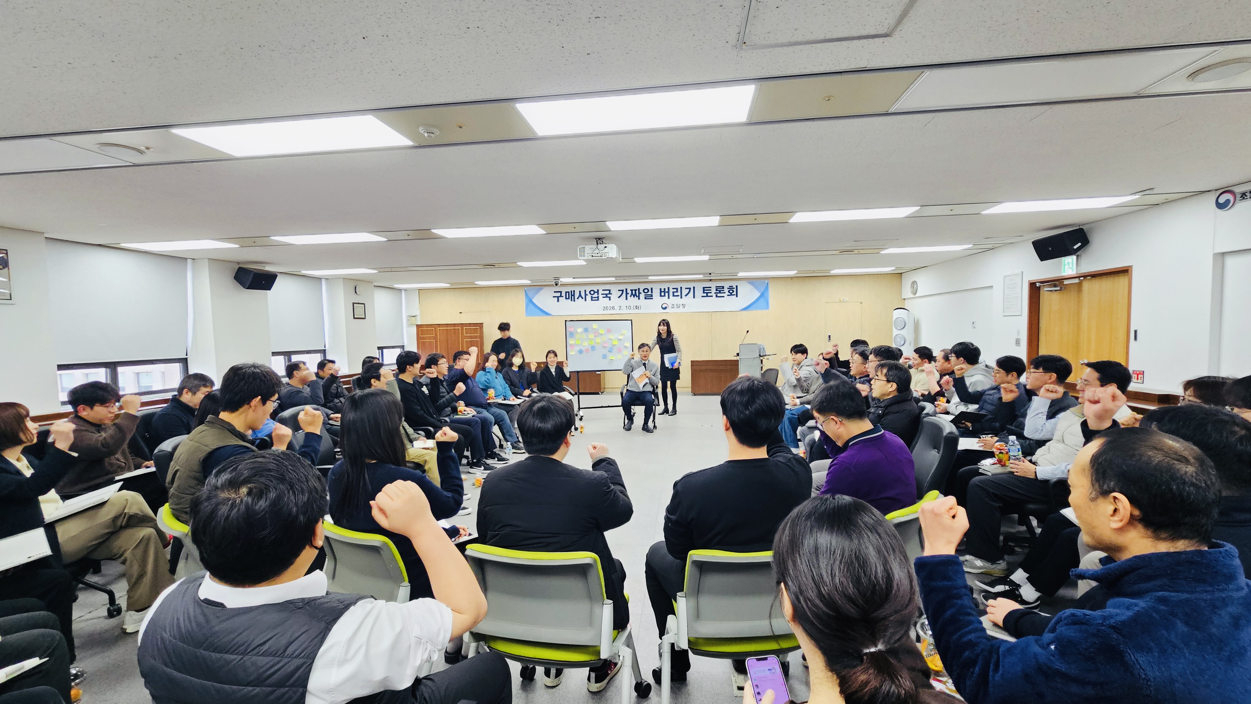 조달청(청장 백승보)은 2월 10일 정부대전청사에서 구매계약업무 담당 약 80명의 직원이 참여한 가운데 "2026년도 구매사업국 타운홀미팅"을 개최했다.