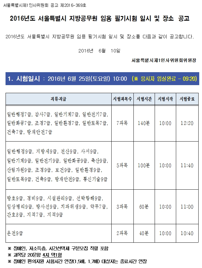 응시표를 출력한 후 인적사항, 지원사항 및 공고문의 시험장소를 반드시 확인하시기 바랍니다. 2016년 하반기부터 면접제도 등이 변경되오니, 수험생께서는 공지사항을 확인하시고 시험준비에 참고하시기 바랍니다.