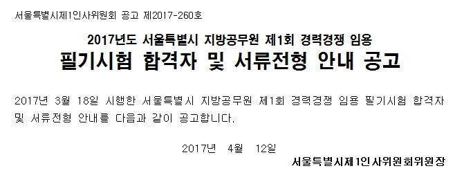- 확인방법: 서울시인터넷원서접수센터(http://gosi.seoul.go.kr)에서 응시자 직접확인