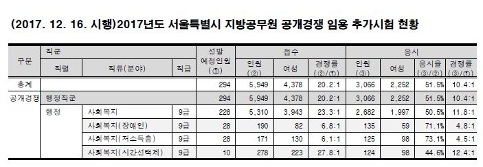2017년도 서울특별시 지방공무원 공개경쟁 임용 추가시험 응시율